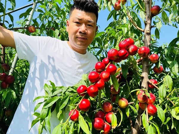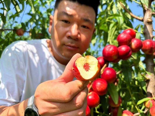 珍珠棗油桃一號(hào):山東臨沂6月下旬成熟,平均單果重50-70克。離核,手掰兩半,食用方便;果肉硬脆,品質(zhì)極優(yōu),口感純正,風(fēng)味獨(dú)特,有冰糖冬棗味;果實(shí)含糖量16-20%,最高26%,吃了棗油桃再吃別的桃淡而無(wú)味。特豐產(chǎn),易成花(自花結(jié)實(shí);抗蚜蟲(chóng)品種,坐果率高,果實(shí)成串。